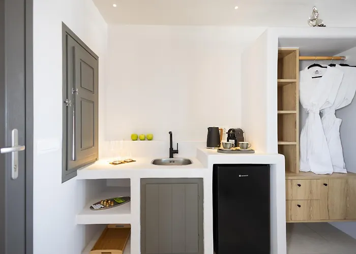 Hotellet erbjuder ett privilegierat läge ca 20 km från flygplatsen Santorini (Thira) och alldeles runt hörnet från playa negra. Gästerna på boendet kommer att befinna sig inom 6 km från Vulkanen på Thera.